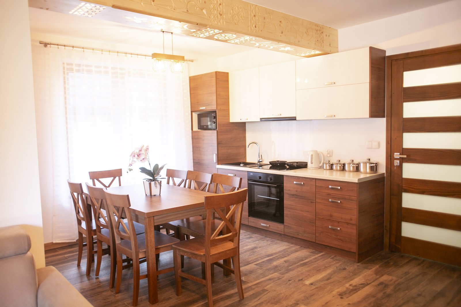Posiadamy trzy domki o wysokim standardzie. Każdy domek-apartament posiada w pełni wyposażoną kuchnię, internet oraz miejsce parkingowe. Po drugiej stronie drogi płynie rzeka Poroniec. Nie przyjmujemy zwierząt.